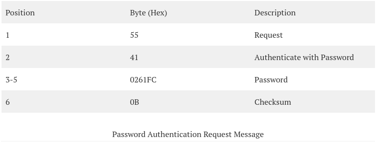 byte [] setpassword = new byte[] {0x55, 0x40, 0x02, 0x61, (byte)0xfc, 0};