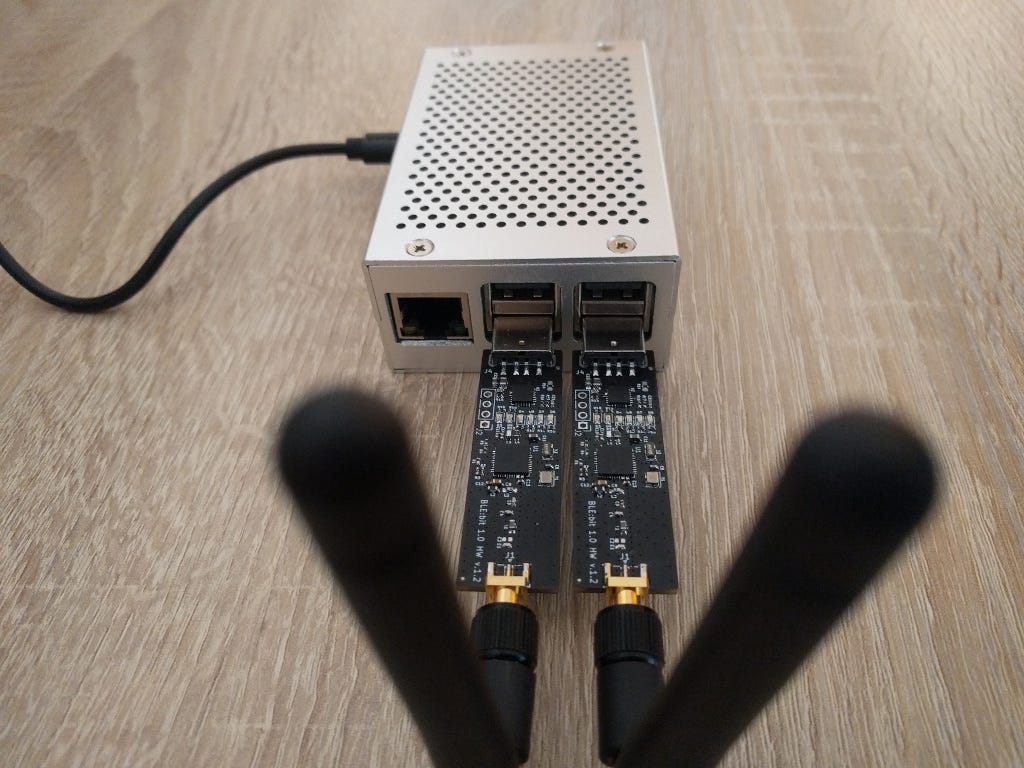 Both BLE:Bit devices are connected to a Raspberry Pi, which hosts the BLE:Bit server, as shown below.