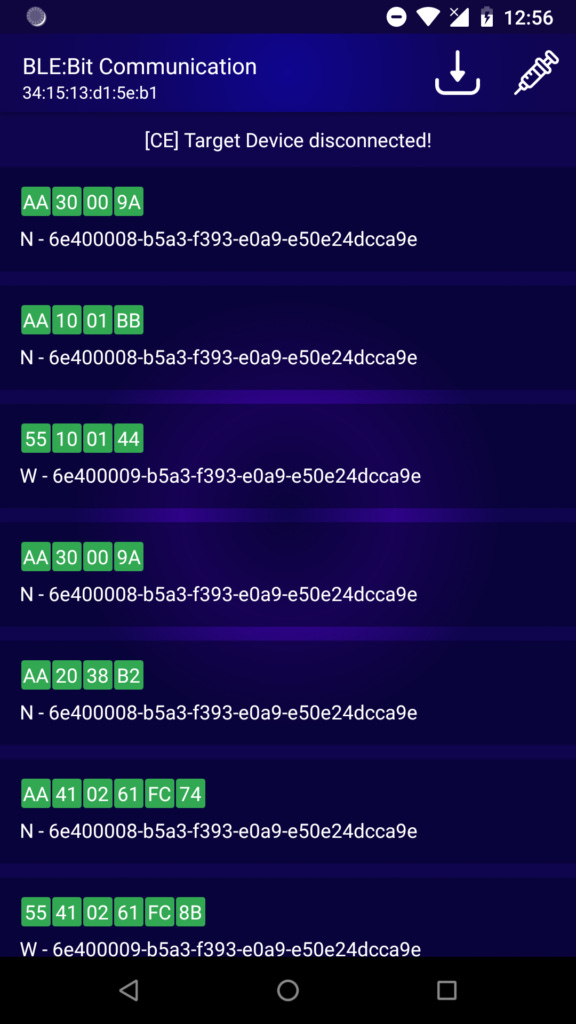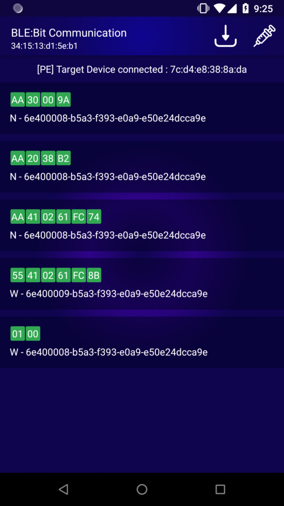 The traffic can then be intercepted using the BLE:Bit Controller application.