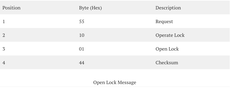 }We can start decoding the protocol messages one by one starting from the very first message. It is sent from the master to the slave, in this case, that is the android application to smart lock.